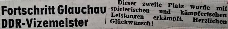 Glauchau Staffelzweiter der DDR-Liga Staffel Süd!!!
