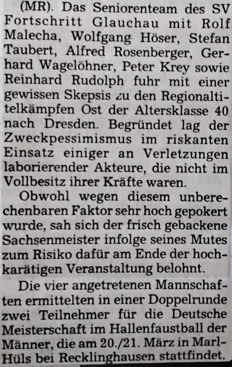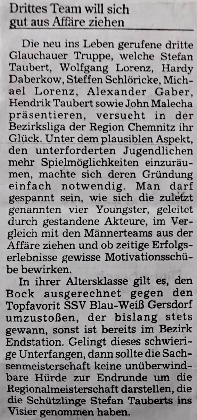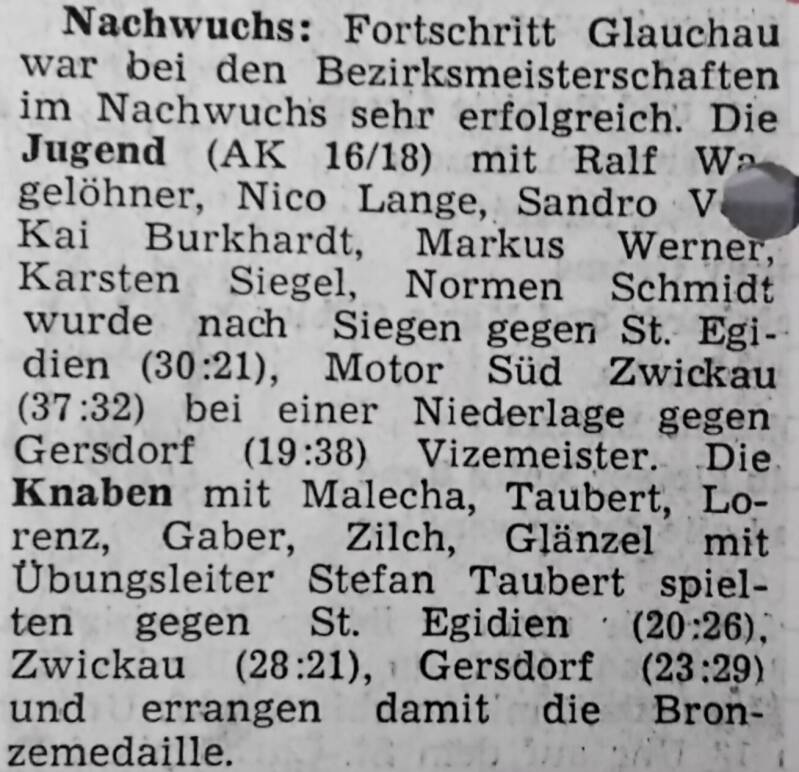 Bezirksmeisterschaft: 1. Platz Glauchau/1, 5. Platz Glauchau/2